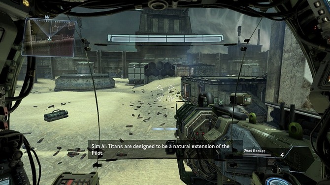まず最初にゲームを起動すると、シミュレーターで訓練しているという設定のチュートリアルが始まります。ここでは、走ったり撃ったりなどの一般的な動作から、タイタンの操作までを学ぶことができ、一通りこなすとすぐに戦場に出ても問題ないぐらい知識を得られる充実ぶりです。