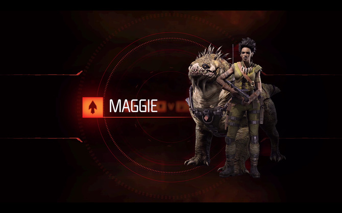 1人目のトラッパー「マギー」は、モンスターの行方を優れた嗅覚でかぎ分け自律行動するペット「デイジー」を連れた女性ハンターで、4 つあるスキルのうち 1 つがパッシブな「デイジー」に占められているためマッチ中の手数が少なく、トラッパーの役割を学ぶ入門に適している。