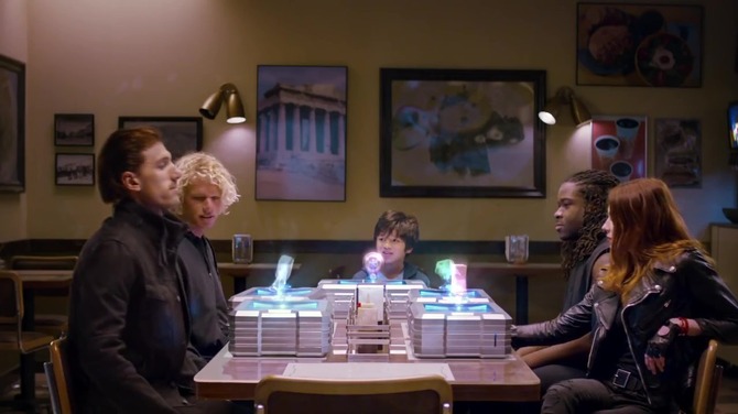 メンバーが全員揃ったところでテーブルは秘密基地に移動。そこからようやくサムスンの「Gear VR」を使ったVR訓練が始まります。VRの世界ではブラック・ウィドウを演じたナターシャ・ロマノフが解説を務め、メンバーはハルクのパワーを試したりと各々のパワーを試します。