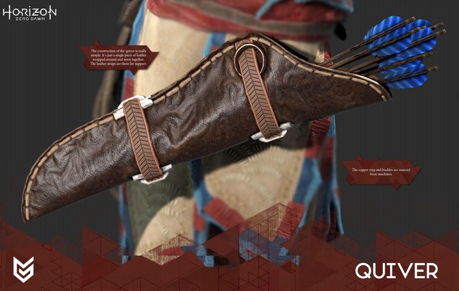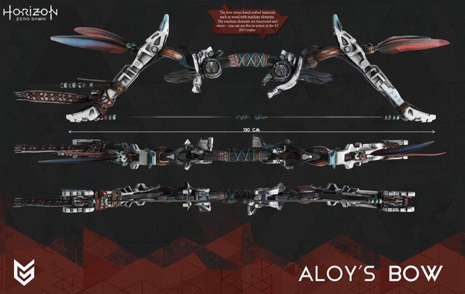 未来技術と民族風の装飾が混在したユニークな装備はまさに本作ならでは。メイン武器となる弓の構造や、ロボットの装甲とウサギの毛皮を組み合わせた籠手の詳細も確認できます。ユニークな世界観が広大なオープンワールドで描かれる『Horizon Zero Dawn』は、PS4用タイトルとして2016年リリース予定です。
