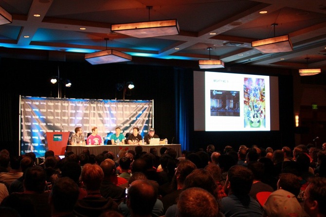 シアトルで開催中のPAX Prime初日の28日、『Mighty No.9』を開発中のcomceptの稲船敬二氏と同作の開発を担当するインティ・クリエイツの會津卓也社長が登壇して「A Mighty Chat」と題したパネルが行われました。