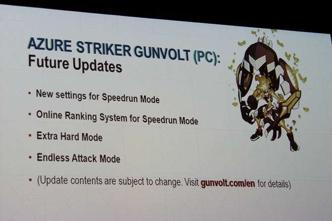 パネルの後半は『蒼き雷霆ガンヴォルト』について。本作も稲船氏とインティ・クリエイツがタッグを組んだ作品で、先にニンテンドー3DSで発売され、Steam(PC)にも移植がされ、ちょうどパネルが実施されている最中に配信開始を迎えました。