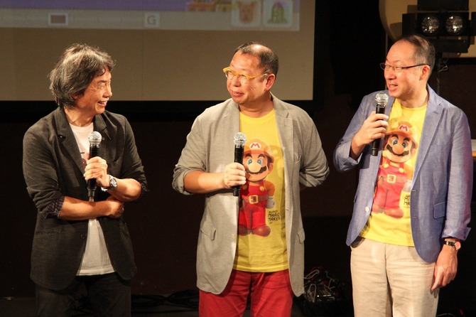 イベントでは発売直後の『スーパーマリオメーカー』を使ったコーナーも。スチャダラパーのBose氏が作ったステージを宮本氏が遊ぶというコーナー。Bose氏は「意味の分からない企画でどんなステージを作っていいか全く分からなかった」と恐縮しきりながら、宮本氏もノーミスでクリアし、「失敗させてはいけないというような気持ちが伝わってきました。ステージ作りには性格が表れるんです」と話していました。