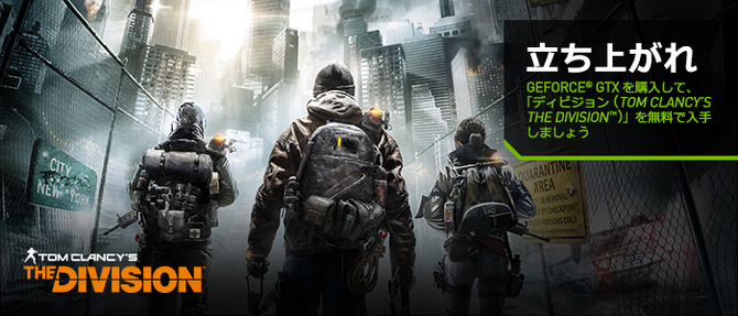 NVIDIAは、UbisoftのオンラインRPG『The Division(ディビジョン)』PC版を同梱するグラフィックカードGTX 970/980/980 Tiと、GTX 970M/980M搭載のノートPCを期間限定で国内発売すると発表しました。