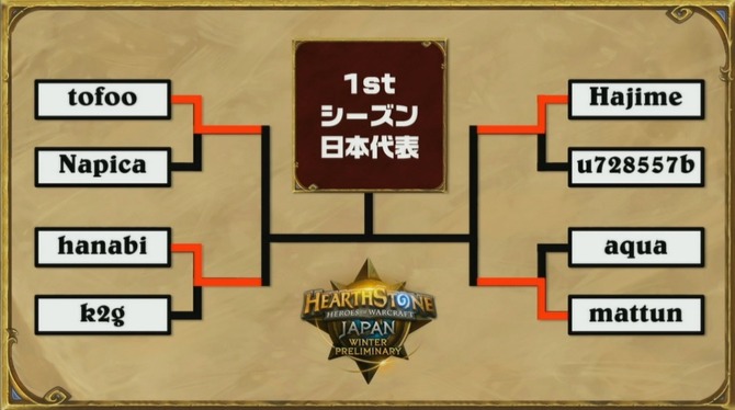 本選手権の出場者は、2月26日(金)23時59分時点において、日本のポイント順位表で32位以内に入っていたプレイヤー。3月12日にベスト8決めが行われ、13日に決勝トーナメントが行われました。なお、ベスト8に進んだプレイヤーは下記になります。