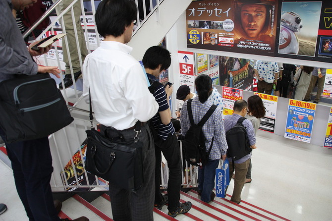 正午になると当選者の番号が店舗入り口とゲーム販売コーナーがある5階に展示され、予約権を手に入れたユーザー達の長蛇の列が店内に展開されていました。