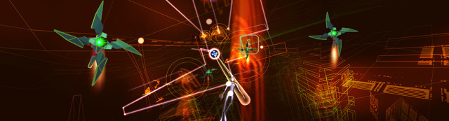 レベルが進むごとにプレイヤーのアクション、映像、効果音のシンクロがパワーアップし、ハイスピードで3D空間を浮遊する感覚とプレイヤーが一体化していくのが本作の特徴。はじめはウィルスを意識してロックオンしていたのですが、次第にその動作が快感になり、さらにはごく自然な身体の動きとして認識されるようになっていきます。ステージごとにウィルス登場の演出やエフェクトが異なるので、次から次へとサイバー空間を旅するような楽しさもありました。