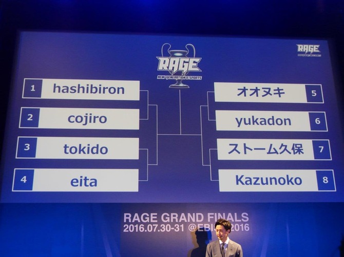 その後は、『ストリートファイターV』のトーナメント組み合わせ抽選に。抽選の結果、下記の通りのトーナメント表になりました。