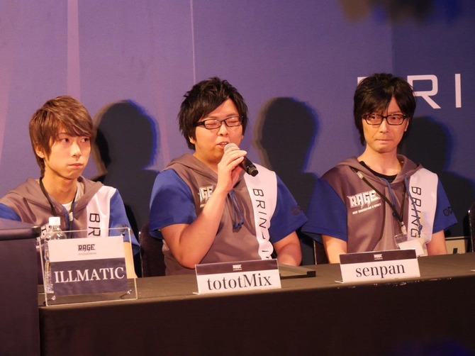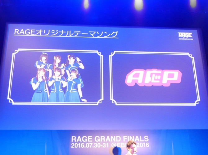 team GL(左上)、Cinq Etoiles(右上)、ILLMATIC(左下)、team Falcon 2(右下)トーナメント組み合わせ抽選後は、大友氏が再び登壇。本イベントのテーマソングに6人組ユニット「A応P」の起用を決定したことが発表されました。タイトル名は「Beyond the Games」でe-Sportsをテーマにしたオリジナル楽曲。本楽曲の公開は7月末を予定しており、「RAGE」の大会や「OPENREC.tv」にて配信を行っていくとのこと。