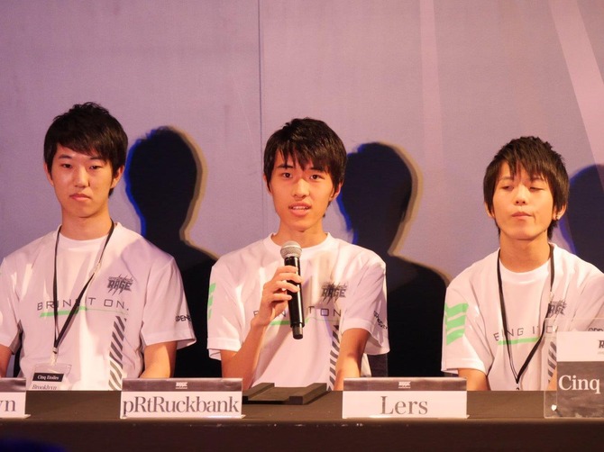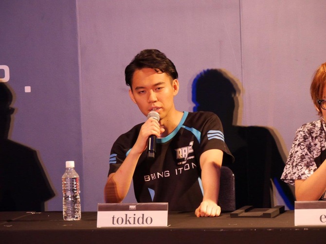 続いて決勝戦に出場する各プレイヤーが登場し、一言ずつコメントを行いました。hashibiron選手は「みんな強いんで、どうなるんだろうという感じ。けど、優勝を目指して頑張りたいと思います」と意気込みを語りました。続いてcojiro選手は「プロゲーマーのhashibiron選手と当たったので、しっかりと彼のクセを研究して臨みたい」と冷静にコメント。3番目は東大卒の頭脳派プレイヤーであるtokido選手。「スポーツと呼べるくらいゲームをちゃんとやっているのは自分くらいだと思っている。それを試合会場で見せつけたい」と力強く宣言しました。4番目のeita選手は、「tokido選手とは普段からよく対戦している。良い試合をして勝ちたいと思います」とコメントしました。
