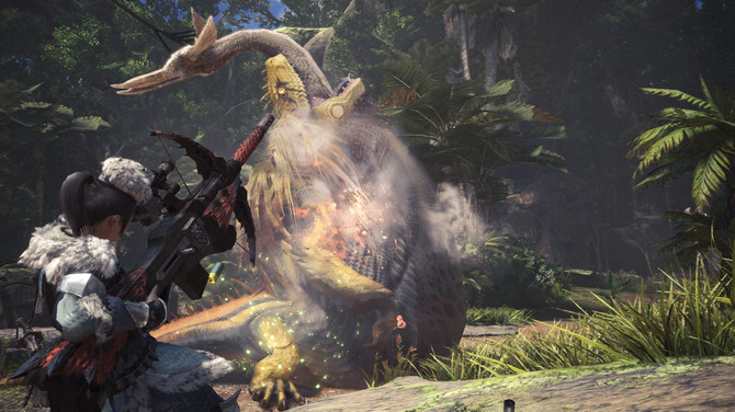 『モンスターハンター:ワールド』は、国内ではPS4向けに2018年初頭発売予定です。