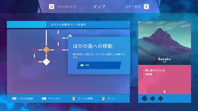 物語の進行でファストトラベルが可能になりますが、錆が全て除去された場所にのみ移動できるので、積極的にこの島を清潔にいたしましょう(啓蒙度の高い表情)。
