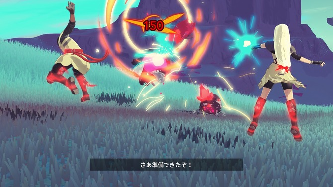 敵味方どちらもHPが存在し、敵は頭上のゲージ増減、ケイ達は装備品の色変化(青、黄、赤の光)で状態を把握できます。敵のゲージをゼロにするとダウン状態になり、そこへ鎮静化のコマンドを畳み掛けることで戦闘に勝利。2人の絆ゲージが上昇し、満タンになるとステータスが向上します。