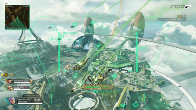 ちなみにこの降下中ですが、一定の範囲内で画面に入った敵を緑色で強調表示できるようになります。これはドロップシップ時の降下中も同様で、相手との距離の他、チャンピオンかどうかも表示されます。