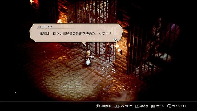 今回プレイしたのは、第7話でロランを差し出す判断を下した分岐からの第8話。ロランの処刑が決まったところで体験版は終了しましたが、今回の先行プレイではその後の展開が語られます。