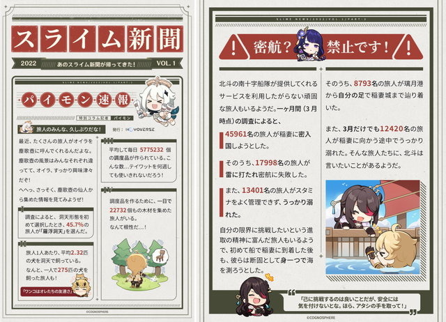 さらにプレイヤーコミュニティ「HoYoLAB」では、海外で先行公開されていた「スライム新聞2022 第1期」の日本語訳バージョンもあわせて公開。