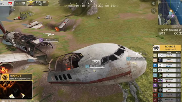 ラウンド2は激戦野原が舞台となり、降下直後からXeNoやREJECTといったチームが戦闘を繰り広げるなど、スピーディーな試合運びとなりました。