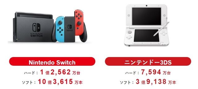 前機の「ニンテンドーDS」のソフトもプレイ可能で、裸眼立体視による手軽な3D体験が味わえた3DS。出だしこそ苦戦したものの、値下げ後から一気に存在感を放ち、通算で7,594万台の普及を達成しました(2023年3月末時点)。
