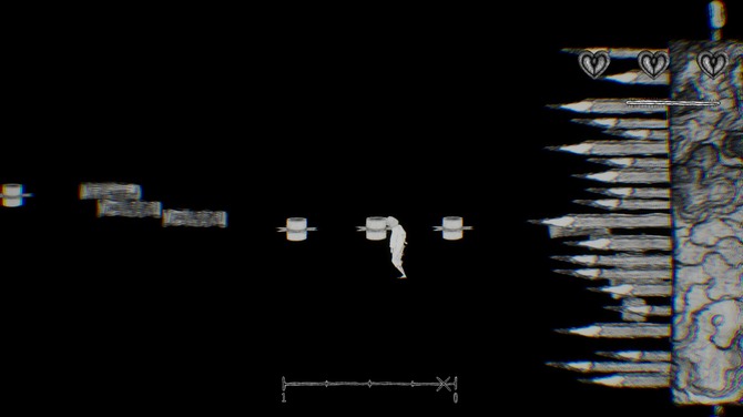 本作は、ベルトスクロールタイプの2Dアクションゲーム。モノトーンめいた世界で少女を操作し、0地点から1地点を目指していきます。キャラクターや背景はA4コピー用紙に鉛筆で描かれており、丁寧なアニメーションは、本作が持つ不気味でどこか儚げな空気感をよく表現していると感じます。