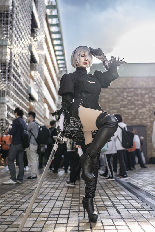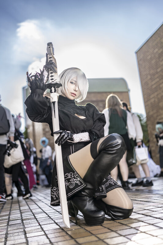 同イベントには、コスプレイヤー/歌手として活動するHaL.さん(X:@HaL_h_l)も参加。『NieR:Automata』2Bに扮して、長い大剣を持ちながらも体幹の良さを活かした躍動感あるポージングを見せてくれました。今年で6周年を迎えた同作はコスプレイヤーの間でも根強い人気を誇っています。