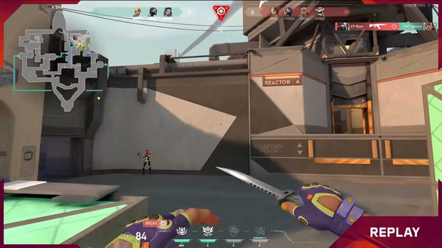 既にこの時点でラウンドの残り時間は40秒ほどでしたが(1ラウンドは1分40秒)、充電切れのBoostio選手を含む全てのプレイヤーが生存しており、100Tはサイトにスパイク設置に成功しました。