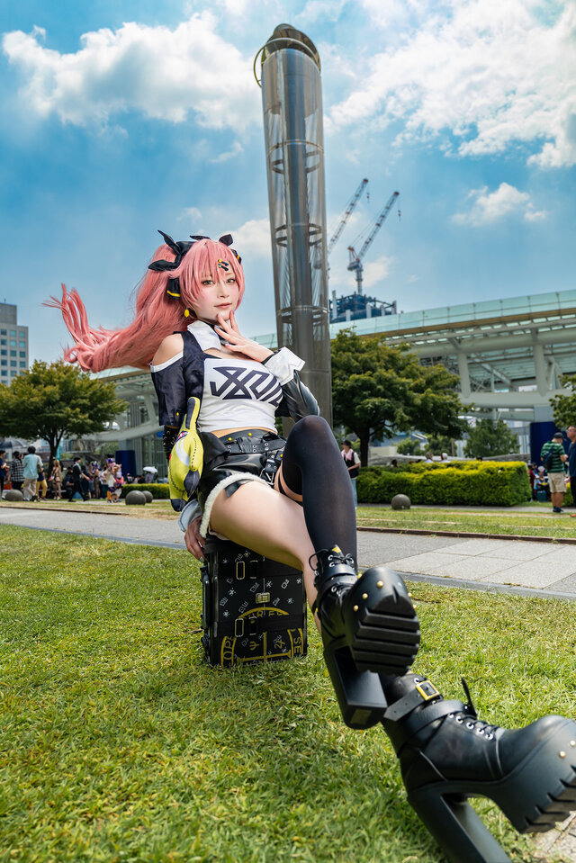 同イベントでは、『ゼンレスゾーンゼロ』の「ニコ・デマラ」を披露するコスプレイヤーの「えびちり」さんを発見。スタイルの良さが感じられるシルエットが大変美しかったです。