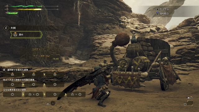 また、ここにセクレトというスパイスが加わることで、広大なフィールドでの狩猟から不便さを取り除いています。スピーディな移動だけでなく、騎乗中の攻撃や、安全に回復や砥石の使用も可能。そのほかに採取も可能だったりととにかく便利です。