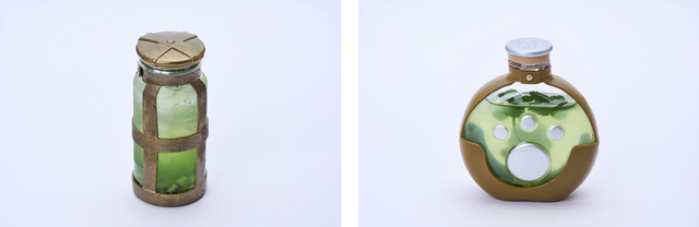 一部のドリンクメニューでは、ハンターの必需品「回復薬ボトル」が付いたお得なセットに変更可能です。ボトルは「回復薬ボトル」「回復薬ボトル(アイルーver)」の2種類が用意されており、無くなり次第終了となります。