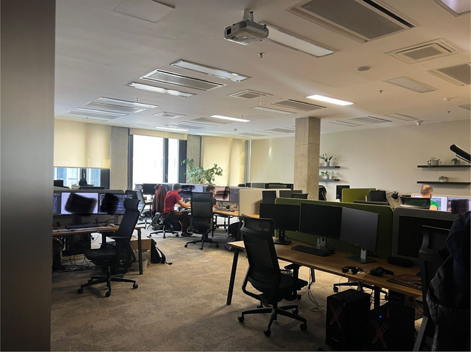 それではオフィスツアーへ。まずはプログラミングルーム。『キングダムカムデリバランス2』のPC、Xbox、プレイステーション、全てのバージョンがここでプログラミングされています。
