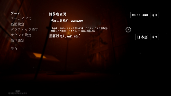 難易度は、アクションが苦手なプレイヤーでも楽しめる「BIGGINER」、バランスの取れた「SWORDSMAN」、存分にスリルを味わえる「HELL BOUND」の3種類。今回筆者はビギナーでプレイしました。途中で難易度変更できるので、いつでも腕試しができます。