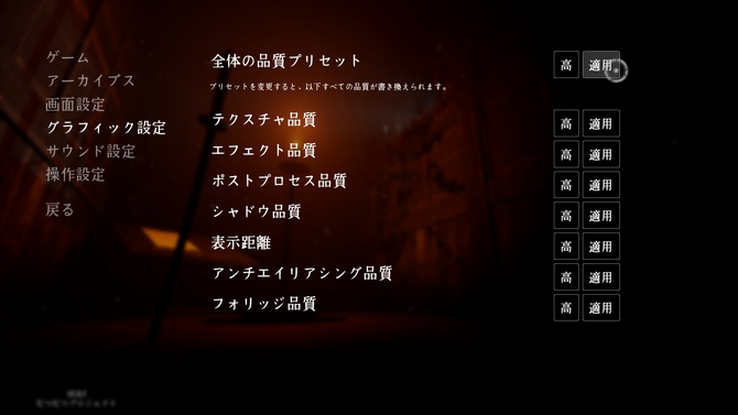 そのほかのオプション設定は、グラフィックやサウンドに関するオーソドックスなものでした。