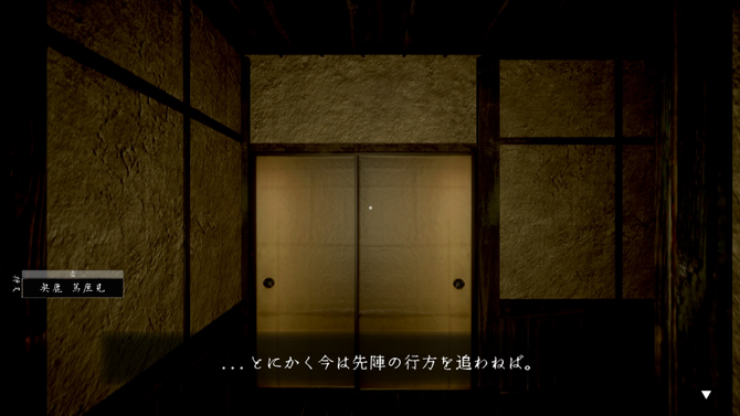 ということで本編開始!まずはプロローグの「奥鹿の大獄(おうかのたいごく)」に挑みます。この章は本編のチュートリアル的なパートで、屋敷内の探索や戦闘など基本的なゲームプレイをおおまかに体験できます。