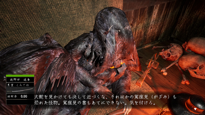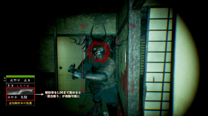 説明によると、戦闘は大前提として(1)「亡霊は“一撃”で仕留める必要がある」(2)「むやみに刀を振り回しても敵は倒せない」(3)「“集中”することによって【解析率】を高めて、相手のスキを狙え」とのこと。すぐには飲み込めませんが、とにかくやってみるしか無さそうです。