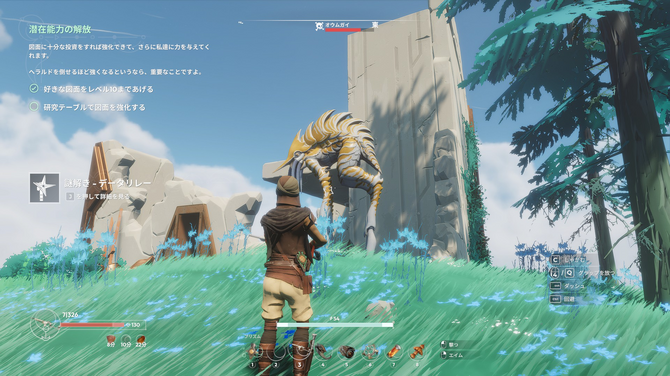 また、遺跡内で「データディスク」を入手してアーク内のSASにアクセスすれば、より高度なクラフトレシピも入手できます。最初に主人公が目覚めたアークは色々な島に同様なものがあり、見つけると世界の情報も少しずつ増えていきます。データディスクの活用のためにも、アークは積極的に探していきましょう。