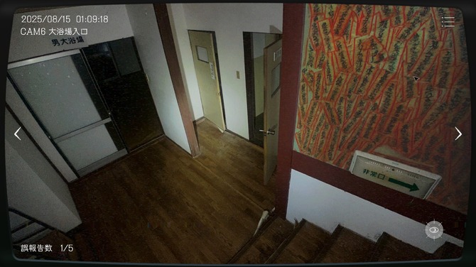 そして、恐る恐るながらカメラを切り替えていると、CAM3の廊下にさっきまで無かった「白いオーブ」が無数に浮いています。なるほど、これが「異常現象」なのか…!「間違い探し」のような感じですね。