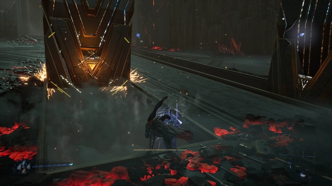 ある程度ストーリーを進行すると入手できる「大剣」は一撃一撃が強力なタイプで、機動力はないものの、カウンター攻撃などを備えています。なかには大剣の攻撃によって装置を起動し、シールドを発生させるなどフィールドギミックも用意されています。