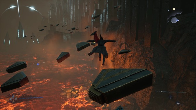 本作では現実世界の孤島や遺跡などさまざまなロケーションのほか、アリーナの力を使うことでまったく別の次元を探索できます。フィールドにはギミックが用意されており、アスレチックのように足場を飛び移るような場面もあれば、剣の攻撃で仕掛けを移動させるといったものも。