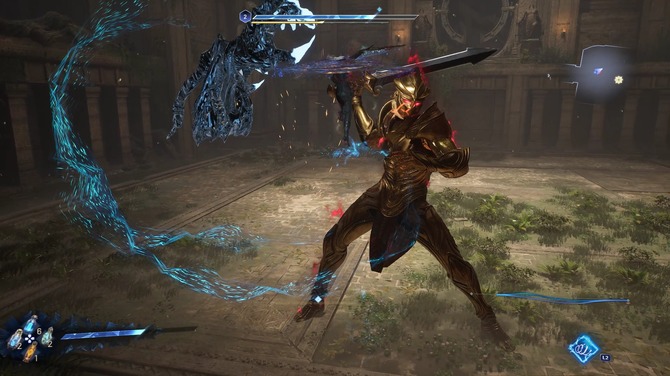 また、ジャストタイミングでのパーフェクト回避やブロックといったアクションによる攻防も楽しめます。パリィや回避のパーフェクト判定はシビアすぎず、敵の攻撃の予兆も表示されているので、いわゆる「死にゲー」のような難しさを感じることはありませんでした。