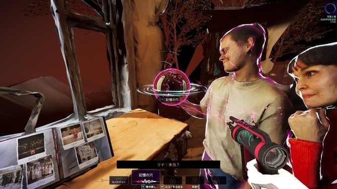 その空間内には、記憶に刻まれている出来事が再現されており、様々な人物やオブジェクトの調査が可能です。さらにその中には音声と共に当時の会話や出来事を確認できるものも含まれています。