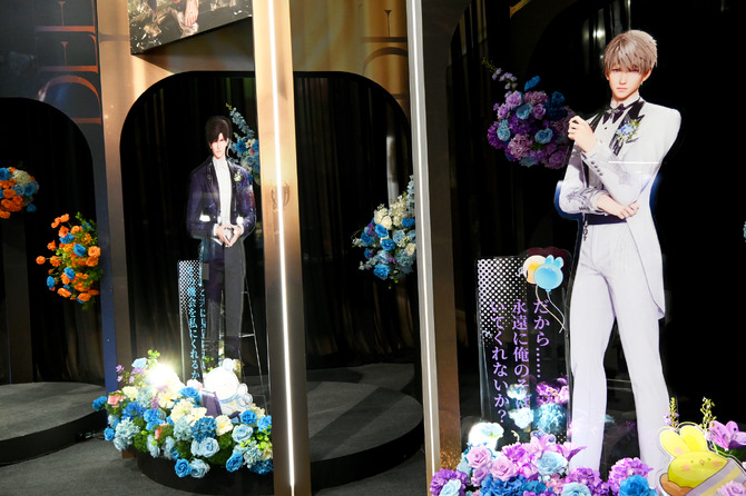 その中でも『恋と深空』は、技術革命が織りなす進化の過程から頭ひとつ飛び抜けているクオリティ。最新バージョンを体験できる試遊コーナーに加えて、ゲームに登場するキャラクターたちの等身大パネル&フォトスポットを多数展示しています。