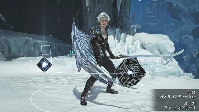 クエスト報酬では、防具「オメガコスチュームα」や、片手剣「ブレードオブオメガ」、操虫棍/猟虫「ロッドオブオメガ/プチオメガ」を生産できます。それぞれに専用スキルも用意。また、チャーム「ふわふわプチオメガ」、ジェスチャー「ファイナルファンタジーXIV 事件屋のマンボ」も獲得できます。