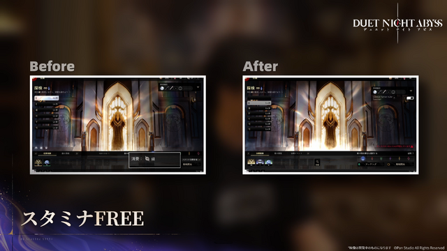 さらに、ゲーム内のコンテンツをプレイする際のスタミナ制も撤廃され、ほぼコンテンツに無制限で挑戦できるようになります。プレイヤーの「レゾナンスレベル」が上がれば高難度のチャレンジが解放され、よりレアリティの高い報酬も獲得可能に。「報酬倍増チケット」「連戦機能」機能は存続し、効率の高い育成は変わらず行えます。