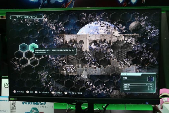 この試遊では、3つのミッションに挑戦することが出来ますが、筆者はオリジナル版をプレイしたことがないために恐らく基本的な要素が詰まっているだろう、グランゼーラ革命軍と戦うミッションAの「残骸地帯の戦闘」を選びました。