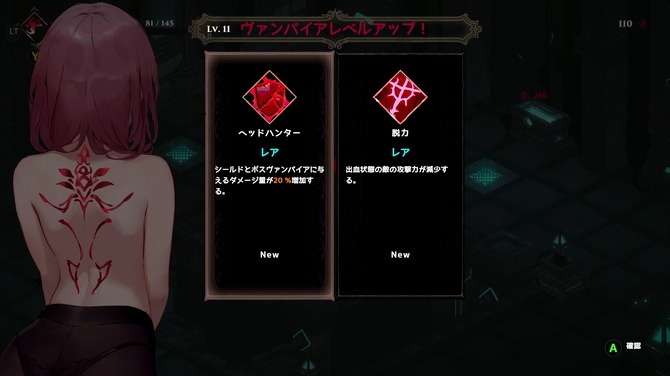 また、殲滅すべき敵であるヴァンパイアの力をあえて取り込むことにより、プレイヤーのさらなるパワーアップも可能です。どこから見ても清楚な修道女の衣装という光と、背中に刻まれた紋様という闇が合わさり最強に見える。