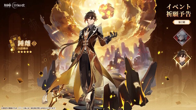 祈願スケジュールは、前半で「ネフェル」が新登場し、「フリーナ」が復刻されます。後半では「アルレッキーノ」と「鍾離」が復刻されます。また、武器祈願ではネフェル向けの「★5 真言の匣(法器)」や「★4 月紡ぎの曙光(片手剣)」「★4 聖祭者の輝杖(長柄武器)」「★4 霜辰(法器)」が登場します。