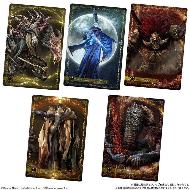 本商品は、フロム・ソフトウェアが展開する『エルデンリング』と『エルデンリング ナイトレイン』のキャラクターや世界観が、カード付きツインウエハースとなって登場したもの。全26種の高級感あるメタリックプラカード仕様で、作中で印象的なデミゴッドや夜渡りたちがラインナップしています。