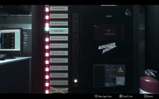 ドアによってはハッキングツールを使ってロックを解除しなければなりません。ハッキングはミニゲームになっていて、上下する白いバーをタイミングよくストップさせます。時間制限もあるので注意。ハッキングが必要な部屋には貴重なアイテムもありますので、できるだけ解除していきましょう。
