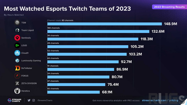 配信者の動向や視聴者数を記録するWebサイト「Streams Charts」は、Twitchにおける総視聴時間のeスポーツチーム別ランキングを発表。日本のDeToNatorとZETA DIVISIONがそれぞれ7位と9位にランクインしています。