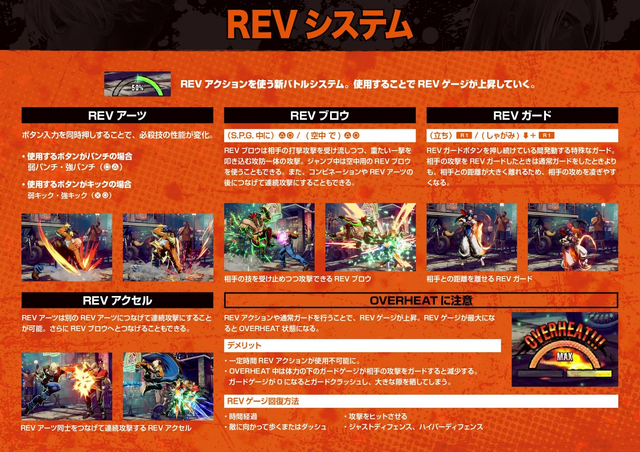 REVシステムを使い倒し、車のメーターのような形のゲージがいっぱいになってしまうと、オーバーヒートという状態に突入。この状態ではREVシステム関係のスキルが使えなくなってしまうほか、ガードゲージがゴリゴリ削られてしまうなど、多くの不利を背負うこととなります。