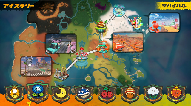 公式サイトでは「パワフルラリー」「アイスラリー」「ムーンラリー」が映像付きで紹介されています。配信された映像では8つのカップが用意されていて、その中では「トゲゾーラリー」のルートも確認できます。